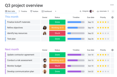 We set up boards, timelines, and dashboards to monitor all task progress, track our performance, and give you a clear visual overview in a single page